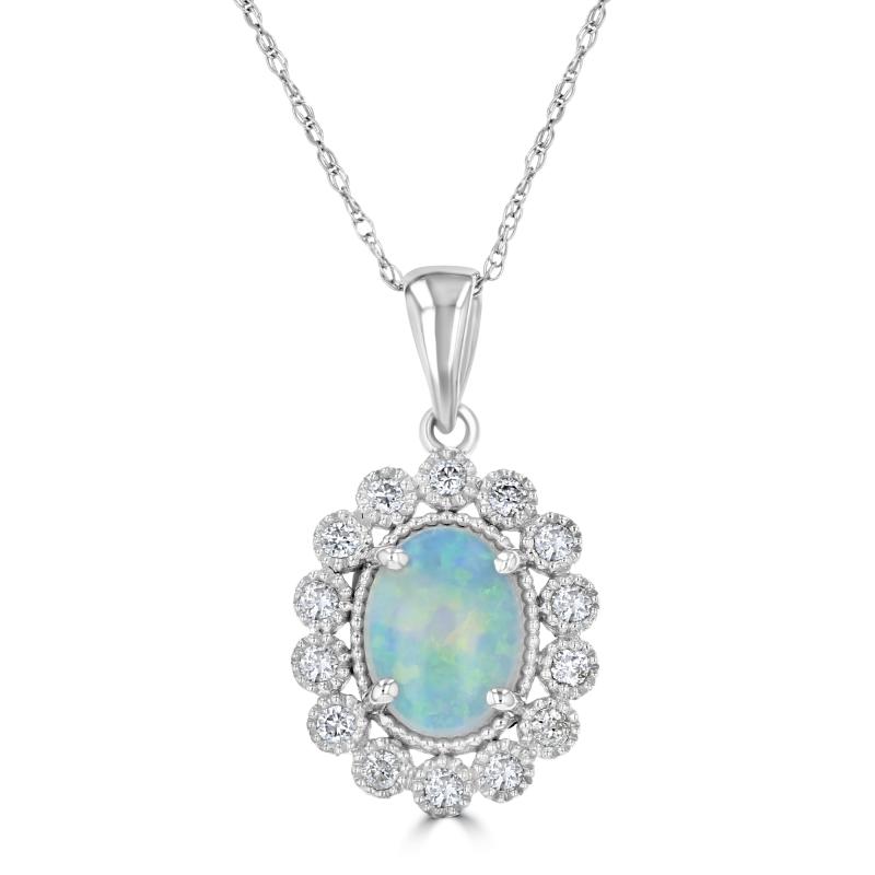 6x8 oval opal beaded edge halo pendant (chain not included). 14kw