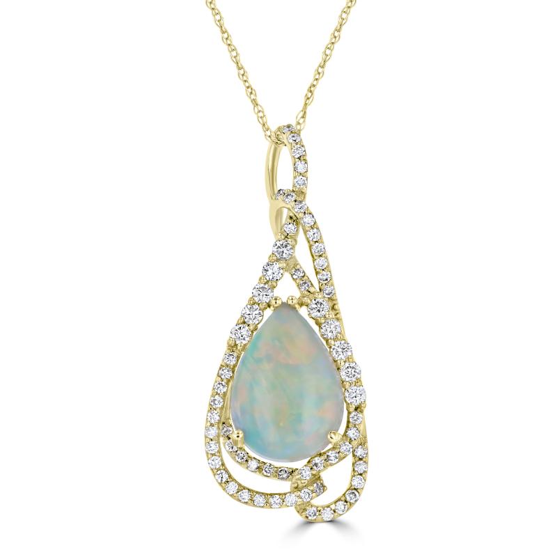 pear opal surrounded by round diamonds pendant (chain not included). 18ky